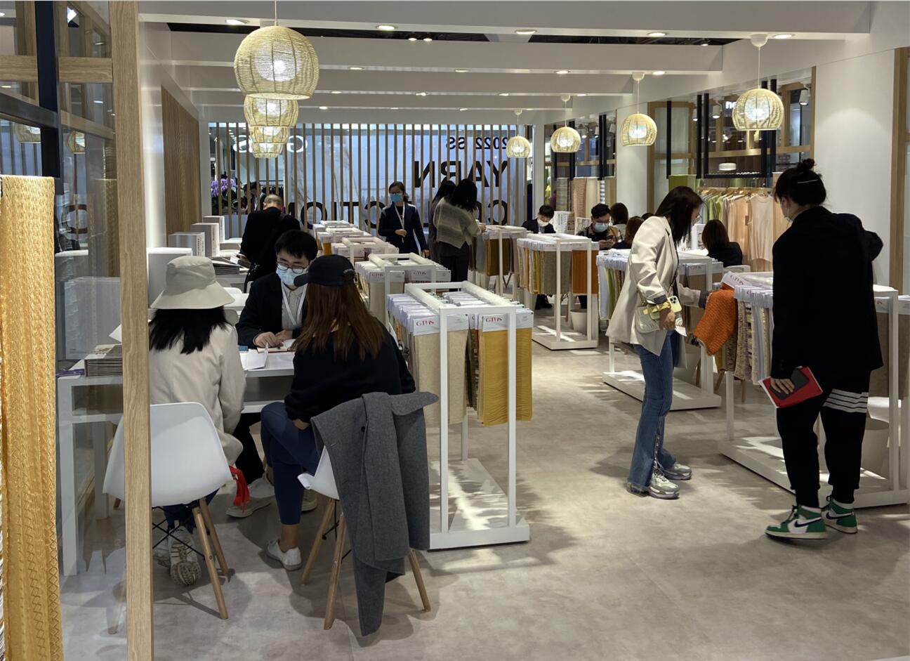 The new season products emphasized the use of natural fiber and biodegradable fibers, utilizing certificated materials such as organic cotton, recycled cotton and linen, hemp, RWS wool, RWS mohair, and recycled cashmere -through various combinations to show the yarn in more diversified forms.